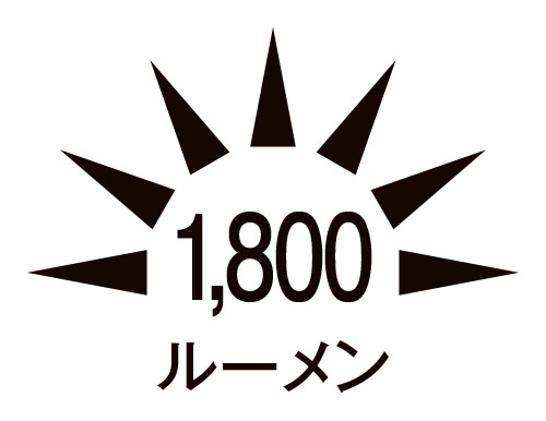 | 明るさ | 強:1800ルーメン 中:500ルーメン 弱:150ルーメン |