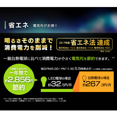 | 演色性 | Ra 80 | 種別 | 60形相当 |