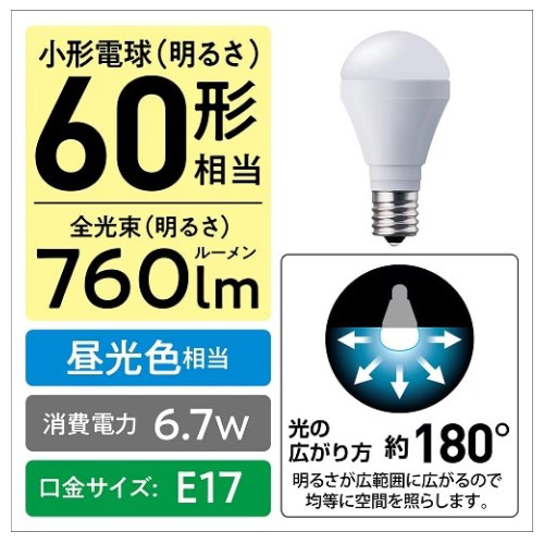 品名 : AC100V/6.7W/E17/LED(昼光色)