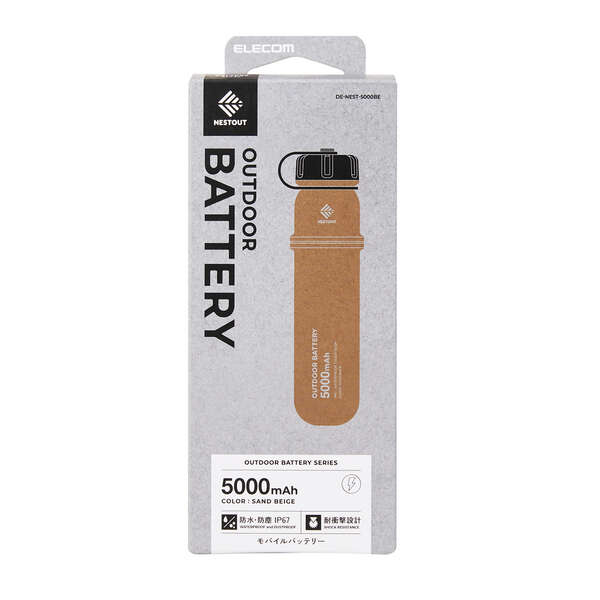 品名 : 5000mAh モバイルバッテリー (防水/防塵/ベージュ)