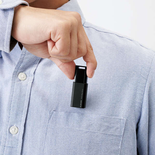 | 重さ約11g、幅57.7×奥行き20×高さ10.5mm(コネクタ収納時)と圧倒的な小ささを実現し、持ち運びや収納にも便利なUSBメモリサイズです。 | |||