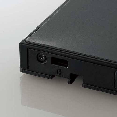 | ケンジントンロック機構を製品背面に設置。盗難防止のためのセキュリティロック機構。共有してドライブを使用する時などに、持ち去られる事を防止。 | |||