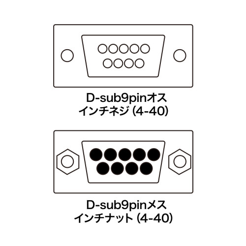 | コネクタ形状 | D-sub9pinオス インチネジ(4-40)-D-sub9pinメス インチナット(4-40) | 結線 | ストレート全結線 |
