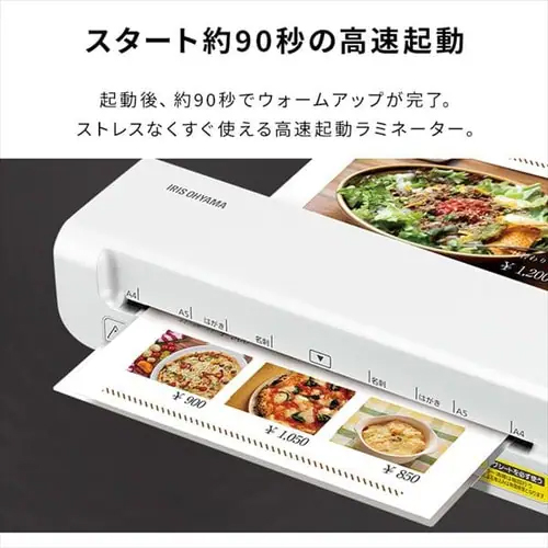 ウォームアップ時間約90秒のラミネーターです