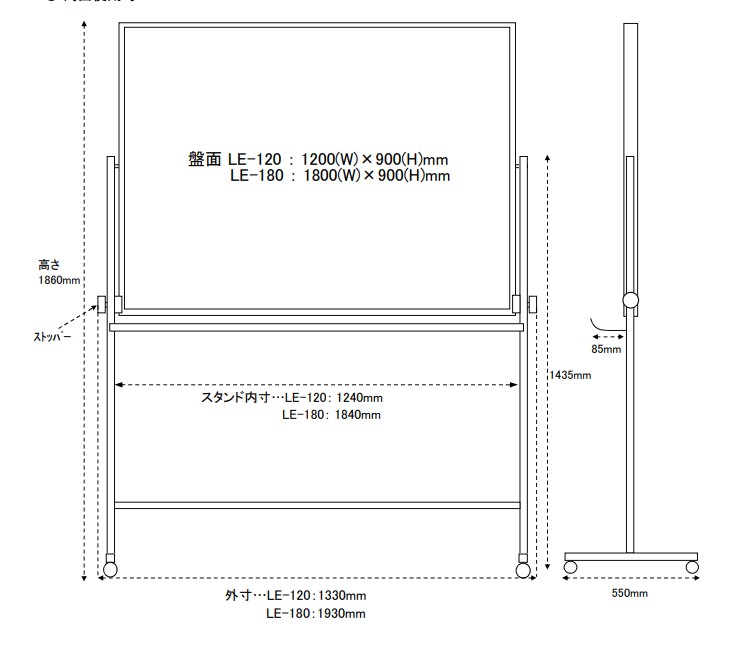 | EA761LE-180 1800x900mm ホワイトボード(スタンド付) |