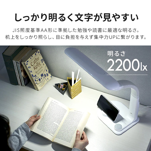 | 携帯やタブレットを充電しながら使える、USB給電付きLEDデスクライトです。 | |||
