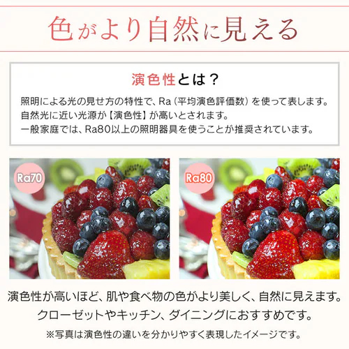 | ■昼白色 太陽光に近い自然な光。メイクをする・服を選ぶ場所におすすめ。 洗面所、クローゼット等。 |