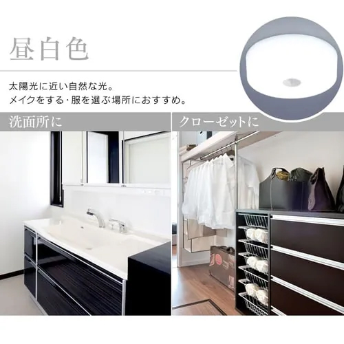 | ■昼白色 太陽光に近い自然な光。メイクをする・服を選ぶ場所におすすめ。 洗面所、クローゼット等。 |