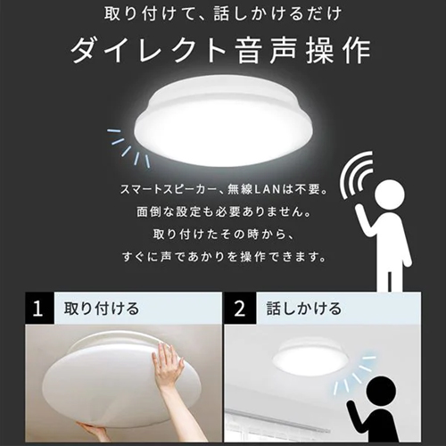 | 声であかりを操作する本体マイク+音声認識IC搭載で、直接シーリングライトに話しかけるだけでON/OFF、調光、常夜灯/全灯等の操作が声だけでかんたん操作できます。 | |||