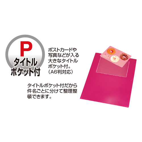 | 写真などが入る便利なタイトルポケット付。 | |||