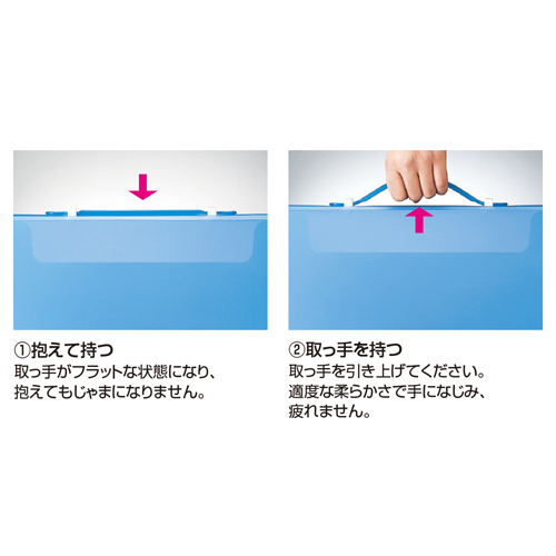抱えて持つ時にも、じゃまにならない便利な取っ手を使用しています