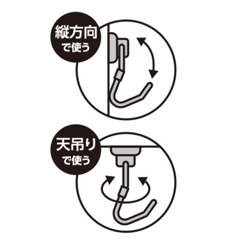 | 可動するフック…フックが上下左右に動き、360度回転します。 | |||