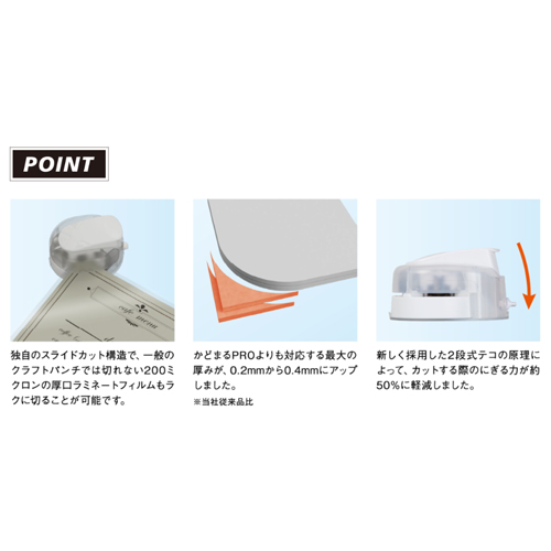 | かどまるPROよりも対応する最大の厚みが、0.2mmから0.4mmにアップしました。 | |||
