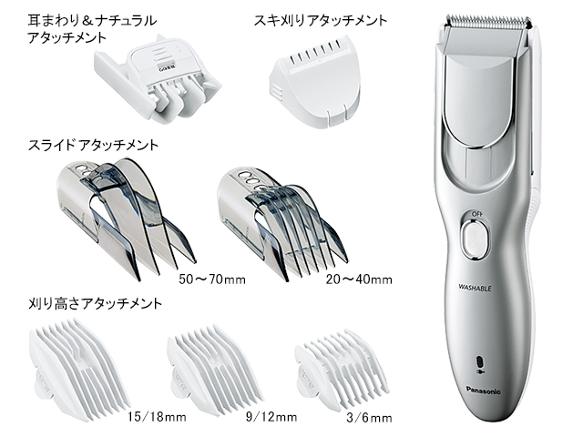 | 豊富なアタッチメントで様々なヘアスタイルに対応(ボウズ~ミディアムヘア) | |||