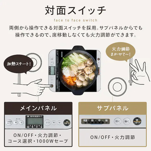 | 卓上で料理の保温から揚げ物まで多用途に使える簡単・便利なIHコンロです。 | |||