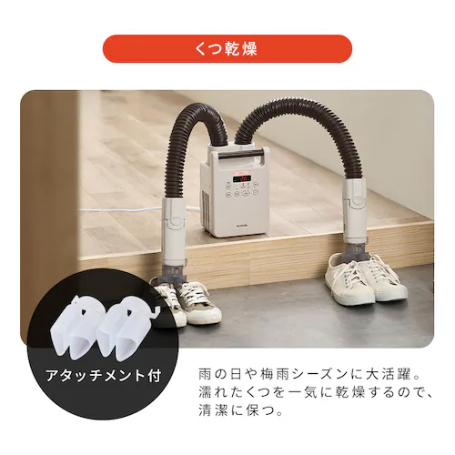 | 靴乾燥にも使える2WAY。 「布団」の他に「靴」乾燥も可能で便利な1台2役。 付属のアタッチメントを取り付けることで、2足を一気に乾燥できます。 スニーカーやブーツ、革靴にも対応。 |