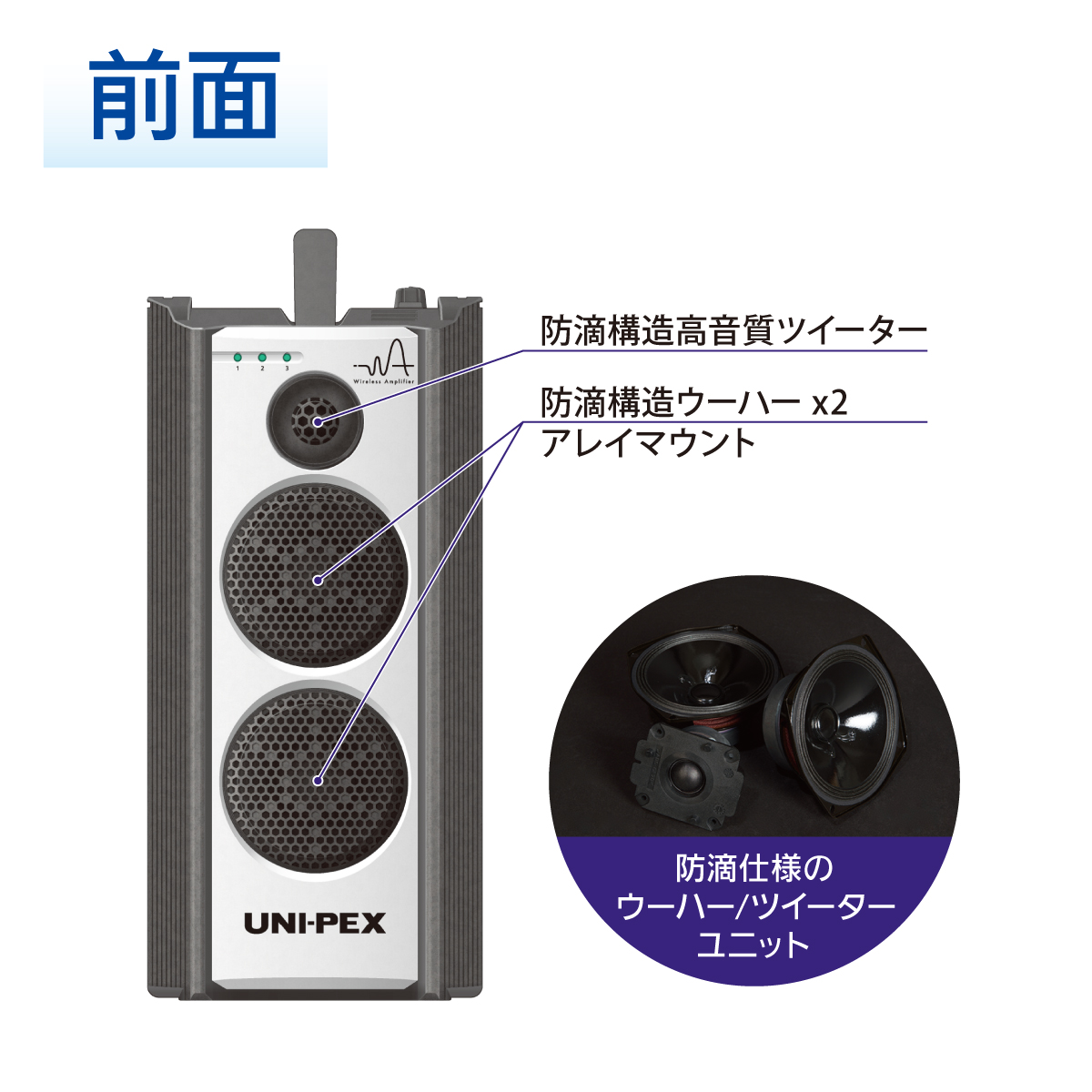 防水性能IPX4(防滴形)屋外での使用も安心なワイヤレスアンプ | |||