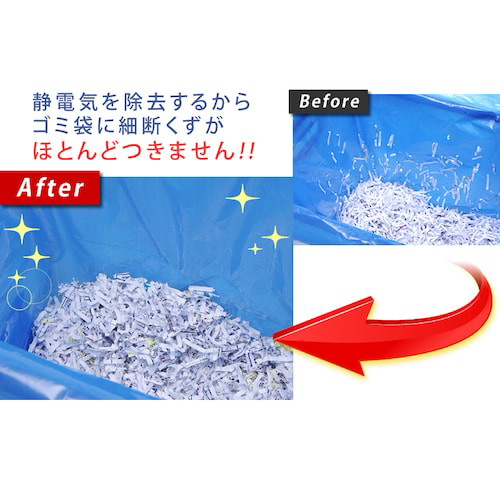 | 静電気除去装置付きで細断くずの飛び散りも軽減します。 | |||