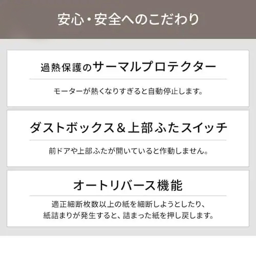 | ふたを開けて紙をトレーにセットするだけで自動で細断、書類処理にかかる時間を短縮します。 | |||