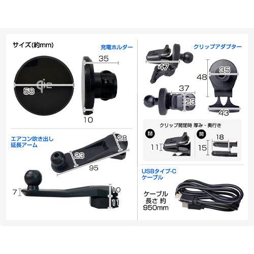 | 付属品 | クリップアダプター、エアコン吹出し延長アーム、USBタイプCケーブル、USB変換アダプター(タイプC→タイプA)、マグネットリング、スケールシート | ||