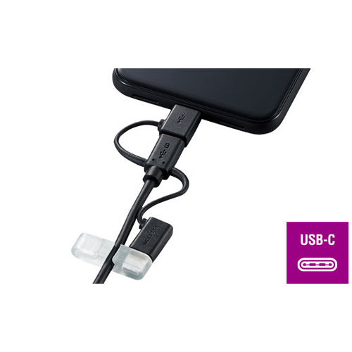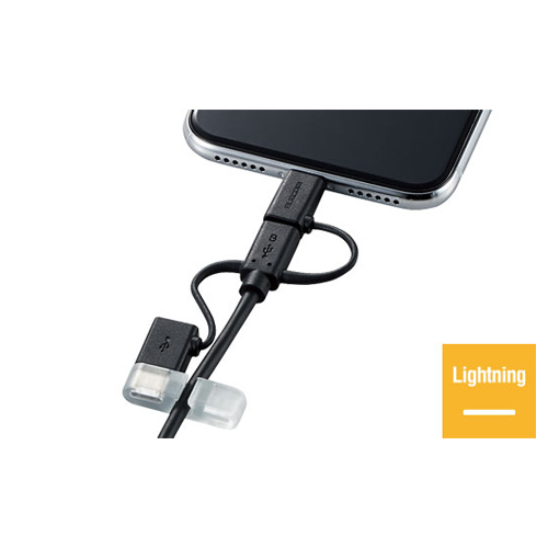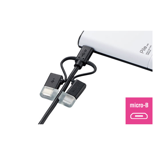 | USB2.0(micro-B)端子をLightning端子、USB Type-C(TM)端子に変換できるアダプターがついた、USB micro-Bケーブルです。 | |||