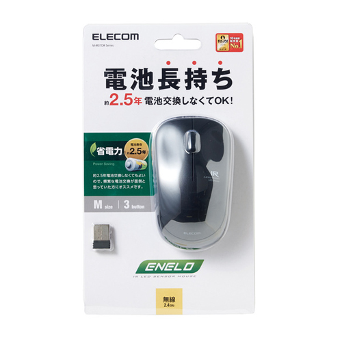 | 消費電力の小さな赤外線LEDを使用したIR LEDマウスです。Blue LEDやレーザーを使用したマウスよりも消費電力が小さいため、約2.5年間電池を取り替えずに使用することが可能です。 | |||