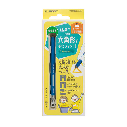 | 鉛筆と同じように親指、人差し指、中指の3点で軸を捉えられる、持ちやすい子ども向け鉛筆型タッチペンです。 | |||