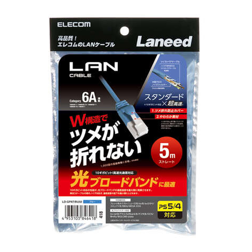 品名 : 5 m LANケーブル(カテゴリー6A準拠)[ブルー]