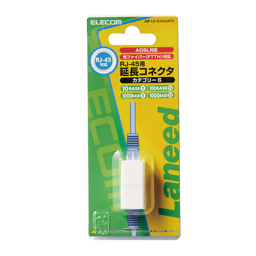 10BASE-T/100BASE-TX/1000BASE-T/1000BASE-TX仕様のLANケーブル延長コネクタです