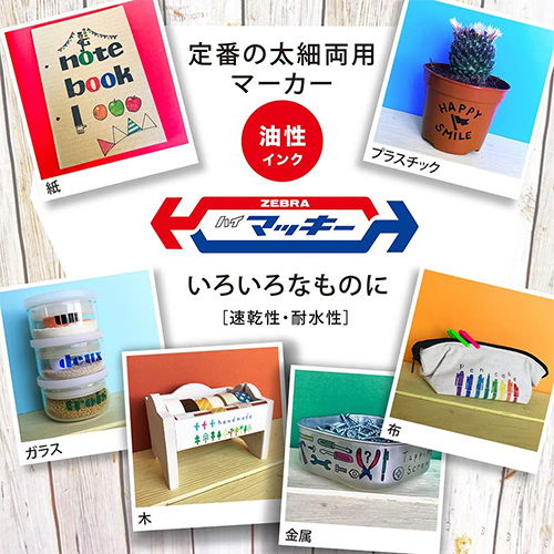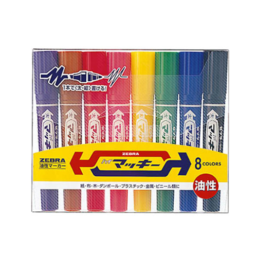 | 商品名 | ハイマッキー | 〈セット内容〉 | 8本セット (黒、青、緑、黄、ピンク、赤、茶、紫) |