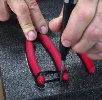 | ペン先が細長いので工具などを置いて精密な型取り線が引けます。 | |||