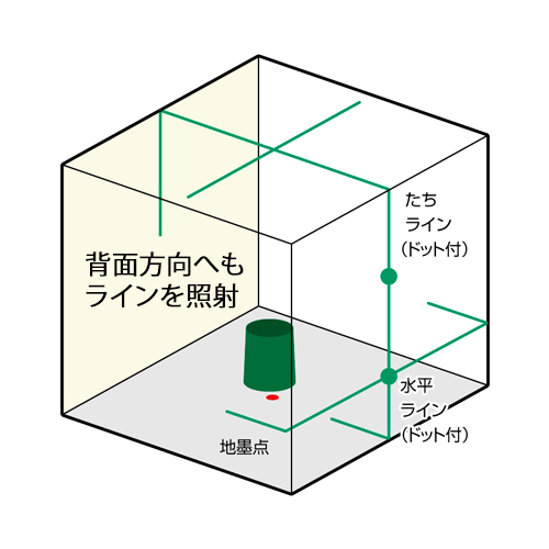 | 光源 | 可視光半導体レーザー | レーザー色 | ライン:緑 地墨点:赤 |