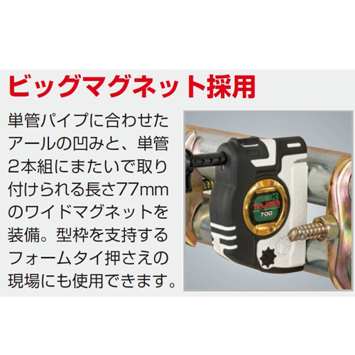 | 単管パイプに合わせた形状とワイドマグネットを装備 | |||