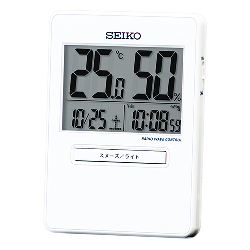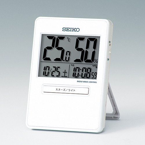 | 機能 | アラーム、アラームオートストップ機能(約5分間)、スヌーズ、ライト、フルオートカレンダー、温湿度表示、12時間制/24時間制切替式、ロックスイッチ、電池切れ予告機能(液晶) | 電池寿命 | 約2年 |