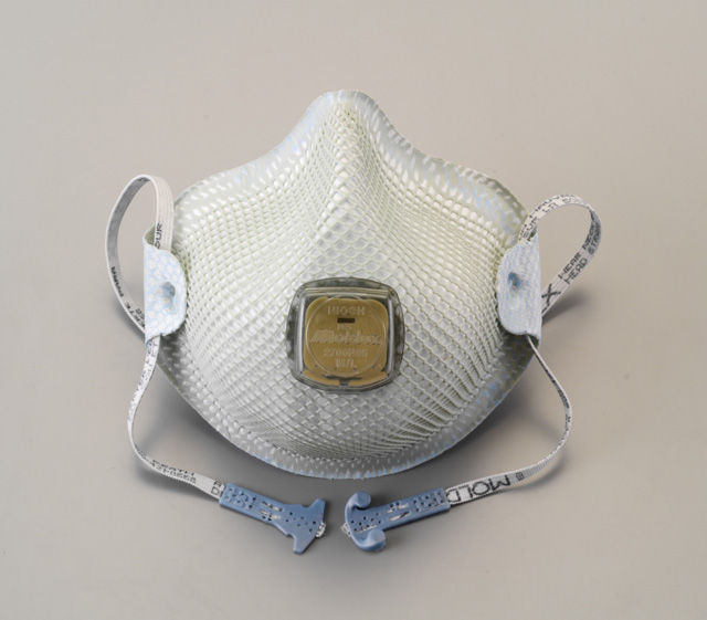 | (参考) N95 アメリカNIOSH(国立労働安全衛生研究所)のマスク用規格N95をクリアし認可を受けた、使い捨てタイプの防塵用高性能マスクです。 Notresistanttooil(耐油性はない) 95%の微粒子(0.3マイクロメートル=3/10000㎜以下)捕集効率~を意味しています。 防塵装置の必要な産業用途のほか結核など、院内感染の防止用途にも用いられています。 NIOSHの定めるマスク用規格の中では、最もベーシックなものです。 |