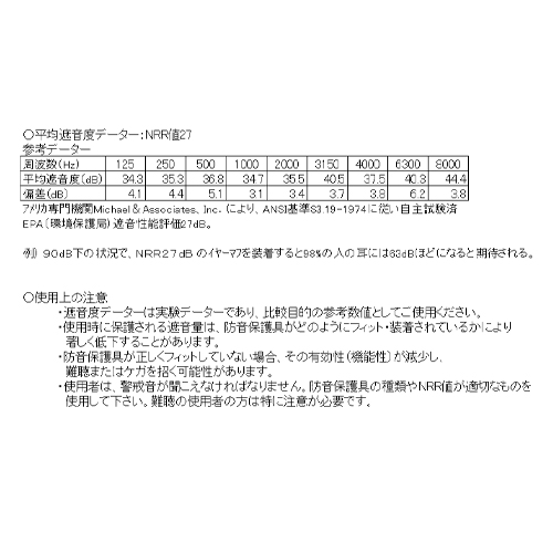 | 材質 | 熱可塑性エラストマー | 遮音 | 27dB |