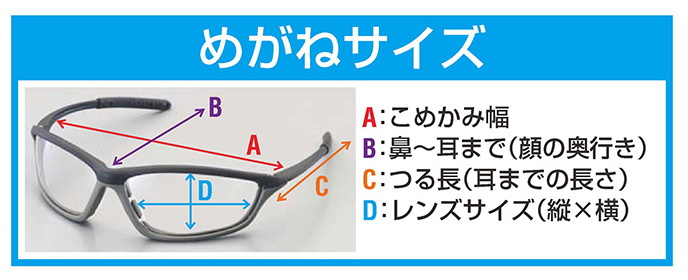 | レンズカラー | スモーク | めがねサイズ | A:130mm、B:155mm、 C:130mm、D:42×70mm |
