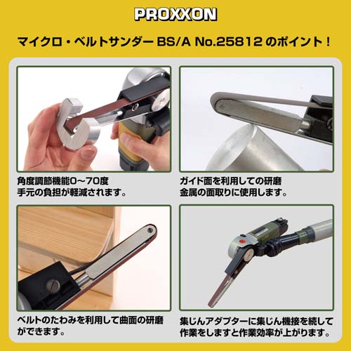 | 付属品 | ・ベルトペーパー3種(細目240番、中目180番、荒目80番) 各2本 ・接続用L型アダプター 1個 ・接続用ジョイント 1個 ・ダスターアダプター 1個 ・ダスタージョイント 1個 |