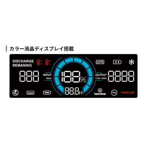 | 【高機能搭載】 高機能なBMS(Battery Management System)により常に全てのセル監視を行い、異常時は警告アイコン表示 パススルー・UPS機能搭載で、切替時間は0.01秒以下 |