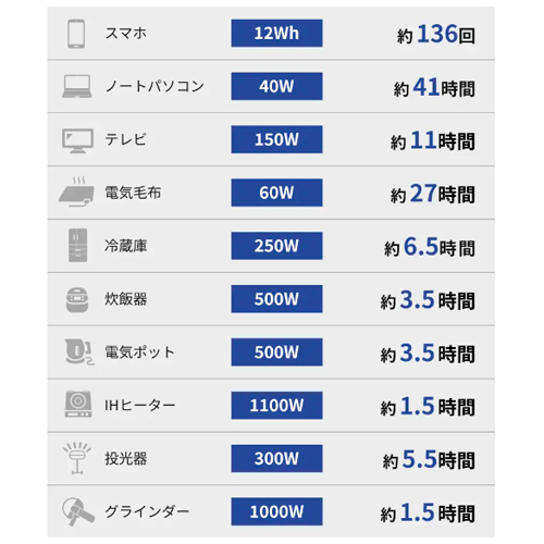 | 【高耐久性、長寿命】 無負荷充電も可能で長寿命(リン酸鉄バッテリー、4000回充電でも80%の容量維持) |