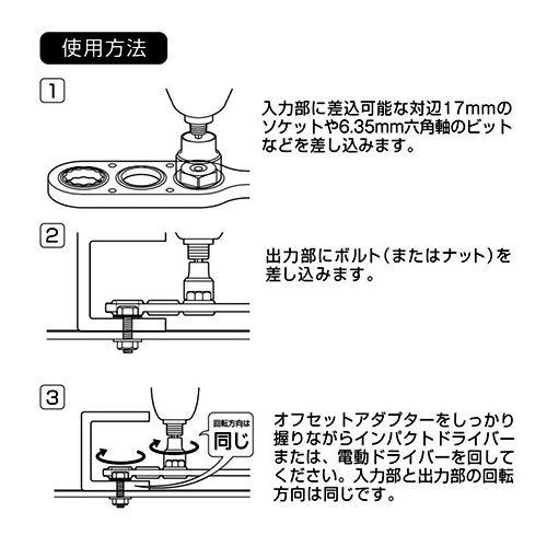 品名 : 17mm 電動ドライバー用オフセットアダプターセット