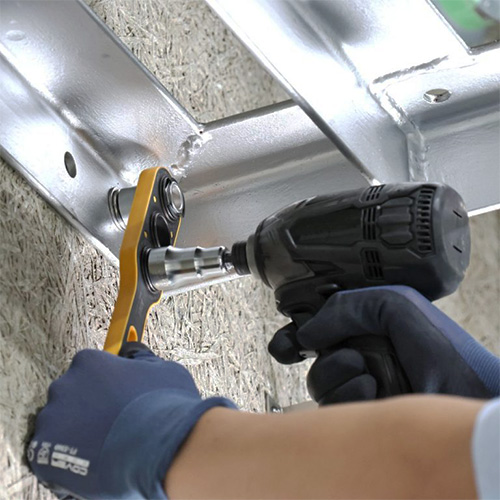 | 狭所のボルト・ナット回しの時短と省力を実現する電動ドライバー用アタッチメント工具 | |||