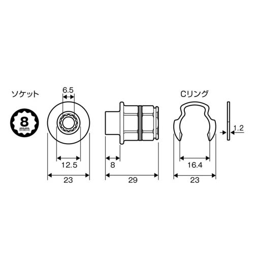 | 材質 | ソケット:合金鋼 Cリング:炭素鋼 |