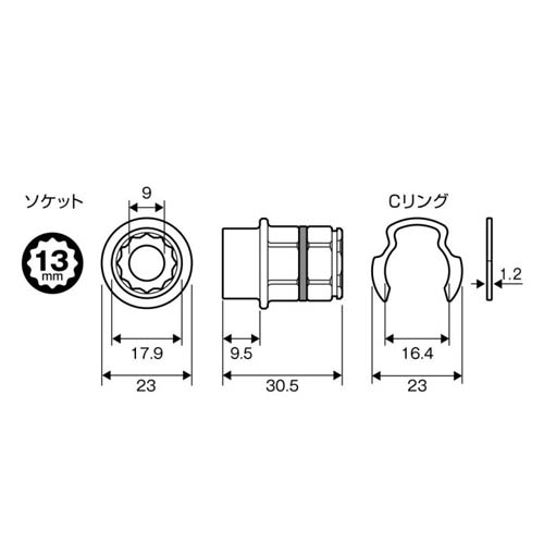 | 対辺 | 13mm | 外径 | 23mm |