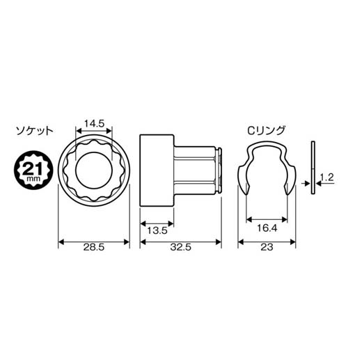 | 対辺 | 21mm | 外径 | 28.5mm |