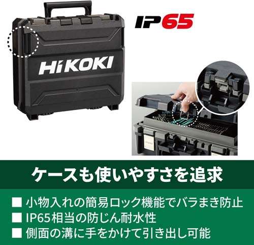 | ラッチの閉め忘れによる小物のバラまきを防止する小物入れの簡易ロックや側面引き出し用の溝など改良された新ケースを採用。IP65相当の防じん耐水性を兼ね備え、ちりやほこり・水の侵入を防止。 | |||