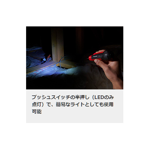 | 暗所でも閉所でも作業がしやすい。高輝度LEDライト搭載、明るさ約2.5倍(メーカー従来品比)。 | |||