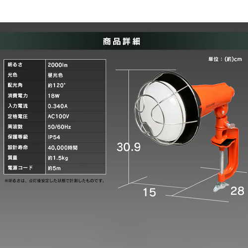 品名 : AC100V/18W 作業灯/LED(コード5m)