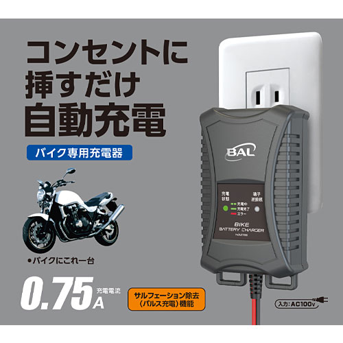 コンセントに挿すだけ“自動充電”バイク専用充電器