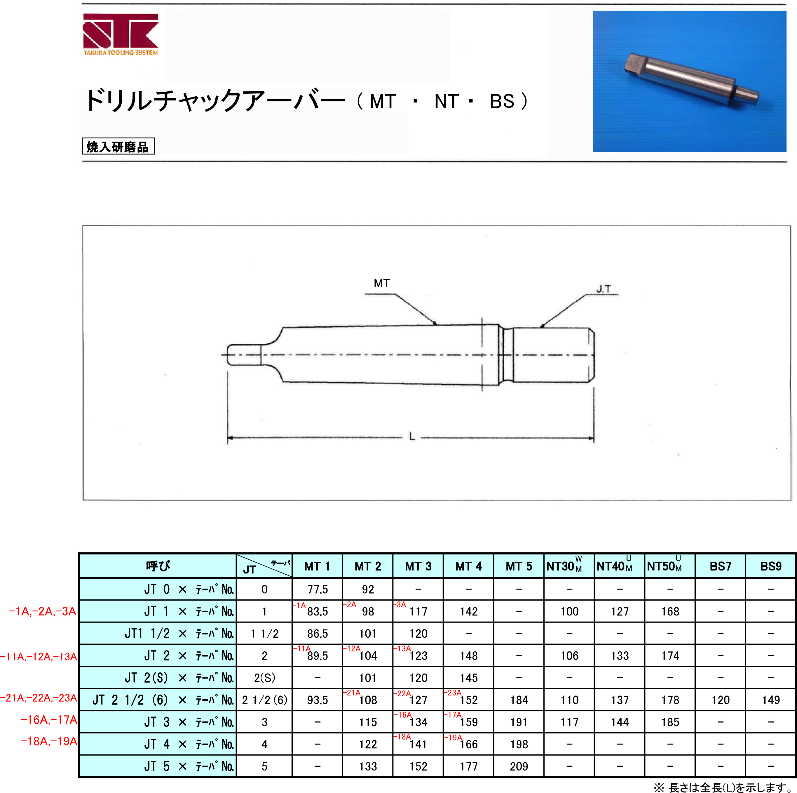 品名 : JT1xMT1 ドリルチャックアーバー